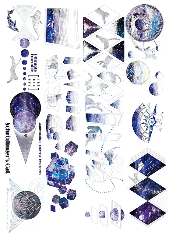 手帐素材和纸贴纸蓝系梦幻人物贴纸打印素材和纸胶带未裁剪 Taobao